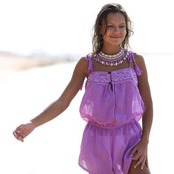 タッセルエンドで肩を結びます。ミニの長さ。ゆるい/さわやかなフィット。軽量でやや半透明の生地。