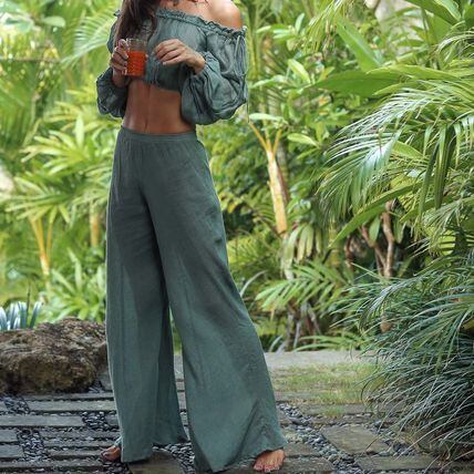 【特徴】リゾート地に合いそうなリネンロングパンツ。